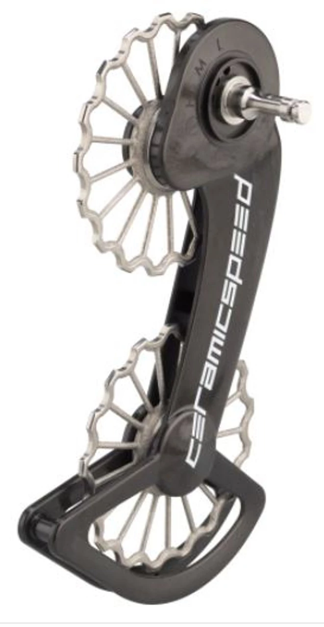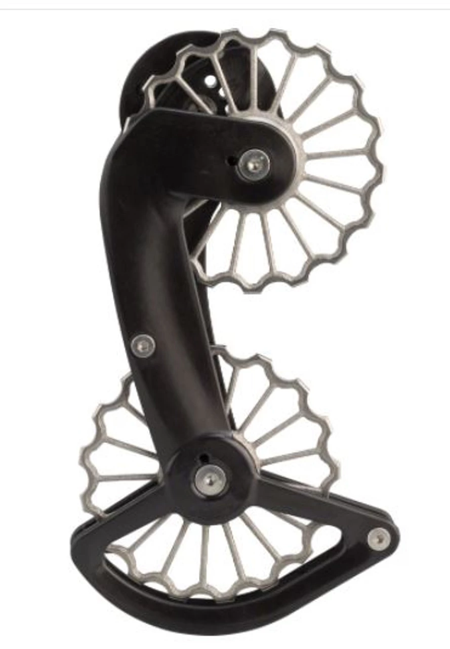 The Oversized Pulley Wheel System (OSPW System) offers increased drivetrain efficiency with two 17-tooth alloy pulley wheels and extremely low friction pulley bearings.