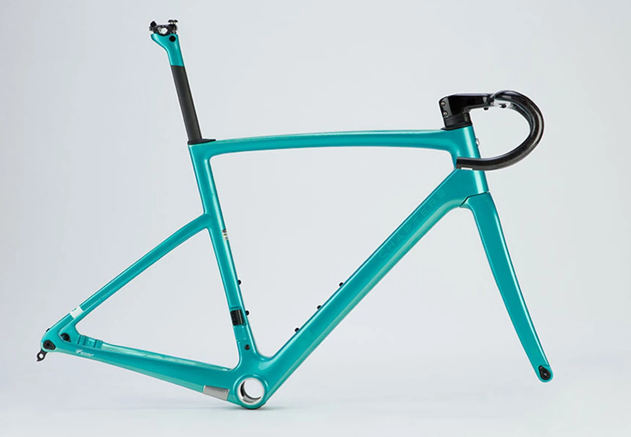 Sporting a T47 Bottom Bracket for easy maintenance, the aluminium BB Shell works in unison with the high-tensile carbon carefully laid into the BB area to increase stiffness by up to 7.3% over the TERE. Additionally, the use of a Latex mandrel for the whole front triangle has increased the Headtube stiffness by 23.5% over the TERE for that out of the saddle and power to the pedals moment.