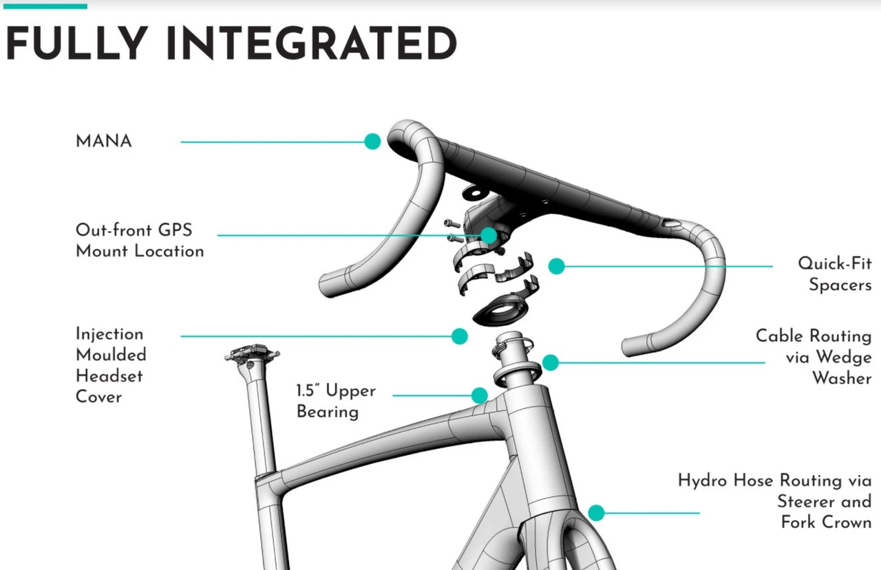 Inspired by the TERE’s Performance All-Road DNA and the AO’s versatility, the TOA has all its cables/hoses tucked away from sight and the wind, creating an aerodynamically seamless transition between the MANA Bar and the TOA’s Kamm-Tail chassis.