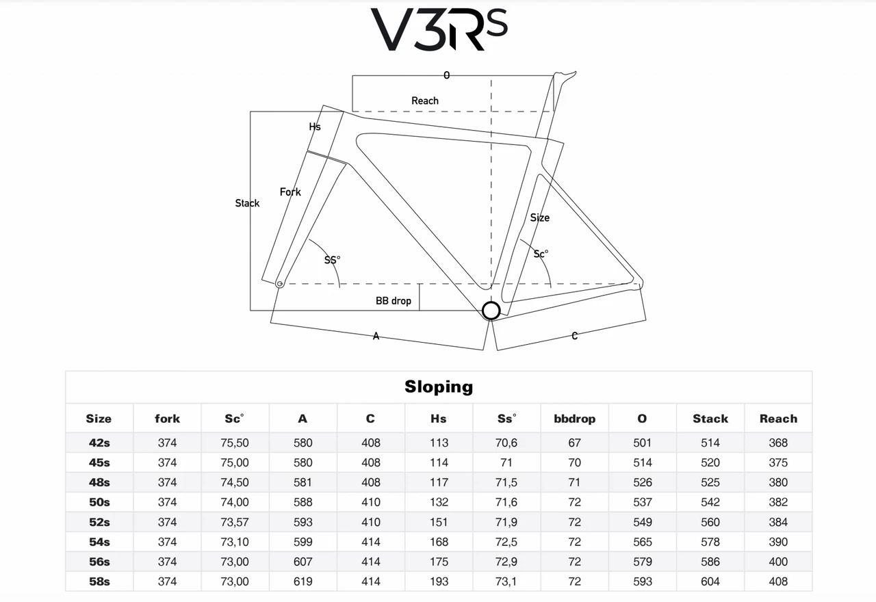While retaining some details from the two frames that preceded it, V1-r and V2-r, the V3Rs design has profoundly changed to align with some standards that have been consolidated in recent years, not least the possibility of mounting larger tyres – up to 28 inches. It’s extremely clean and boasts excellent aerodynamic qualities together with an unprecedented lightness. V3Rs is available in eight sizes from 42s through to 58s and in two versions, direct mount rim brakes and disc brakes.