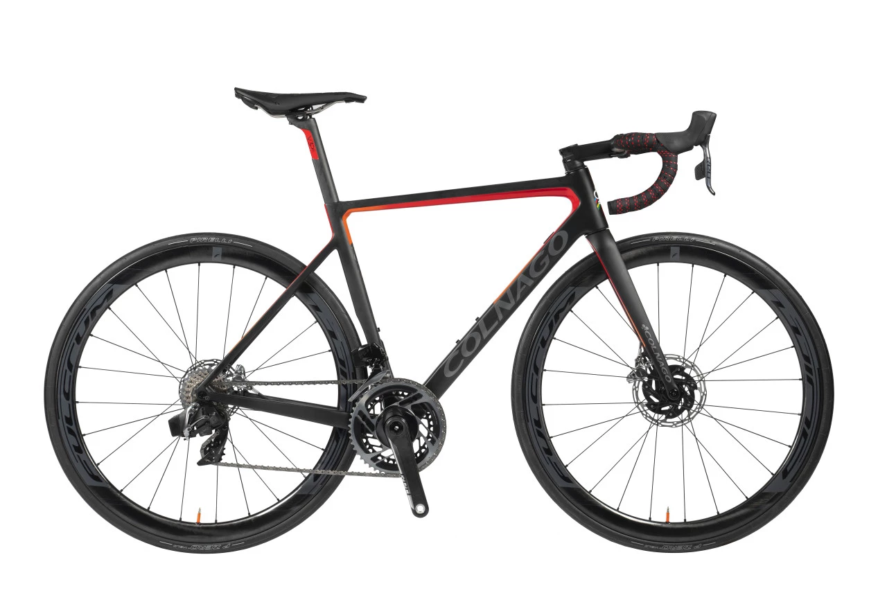 While the rim brake version is based on the use of dual pivot brakes with direct mounting and external cable routing, the disc version uses the exclusive TFS Integrated fork system. The cables pass entirely, internally to the Colnago Sr9 stem and then through the fork steerer. The frame is thus extremely clean and technically more aerodynamic.