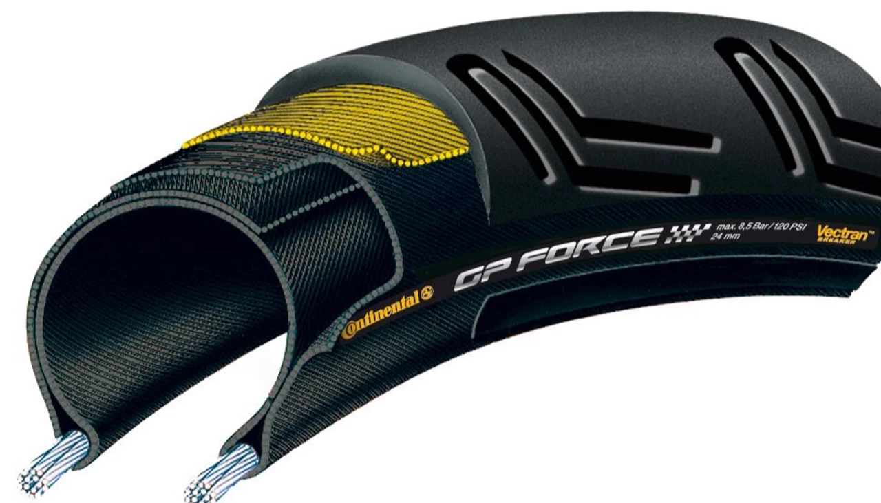 The new GP Force is a powerful rear wheel specialist and with its 24 mm section combined with a fast Black Chili Compound, it gives excellent traction and road handling that’s second to none. These tires are made with Vectran puncture protection and show wear and tear levels via indicators in the tread, details that show professionals are at work.
