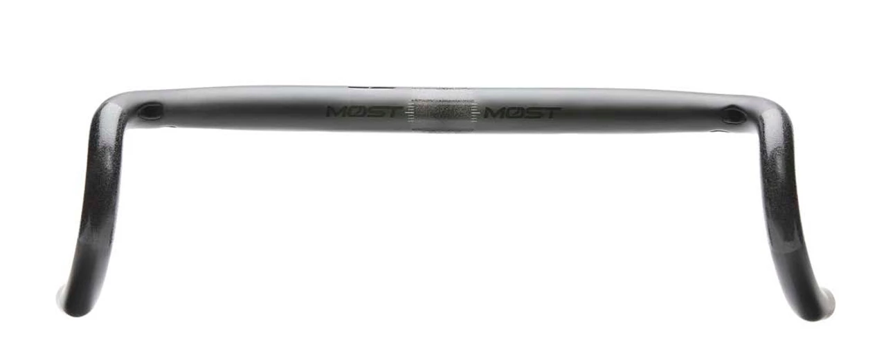 For road, gravel or just the way we ride now. The Most Jaguar Ultra GR carbon handlebar has a 12 degree outward sweep to offer the rider a more aero position on the tops and more control in the drops.Â