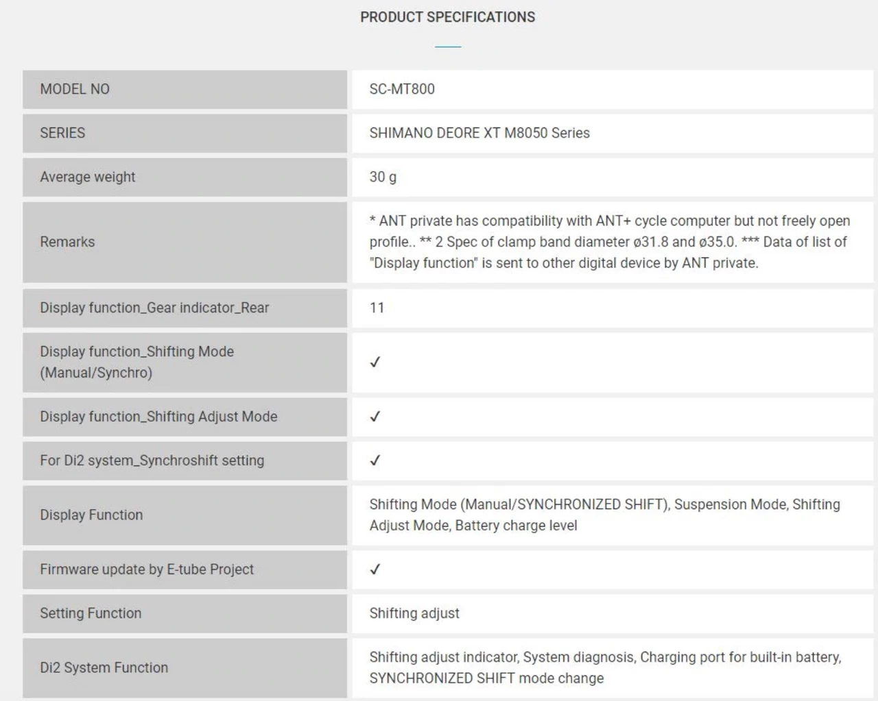The SHIMANO SC-MT800 serves as a display, charging port, and wireless communication connector for E-TUBE compatible DI2 systems.