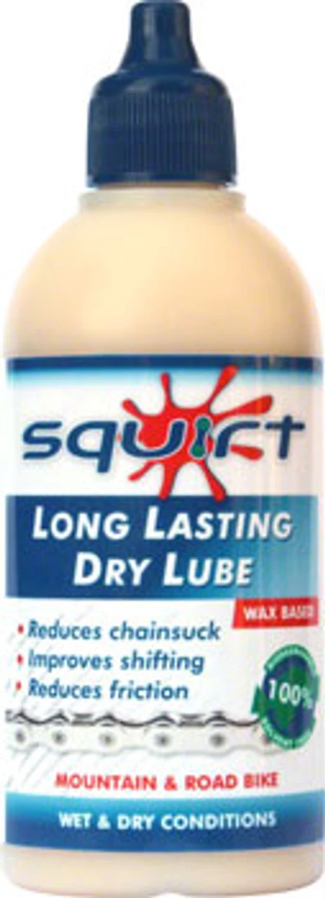 Squirt is a unique chain lubricant – it contains waxes and water in emulsion form that stays clean, lasts long and extends drive train life. It is 100% biodegradable.