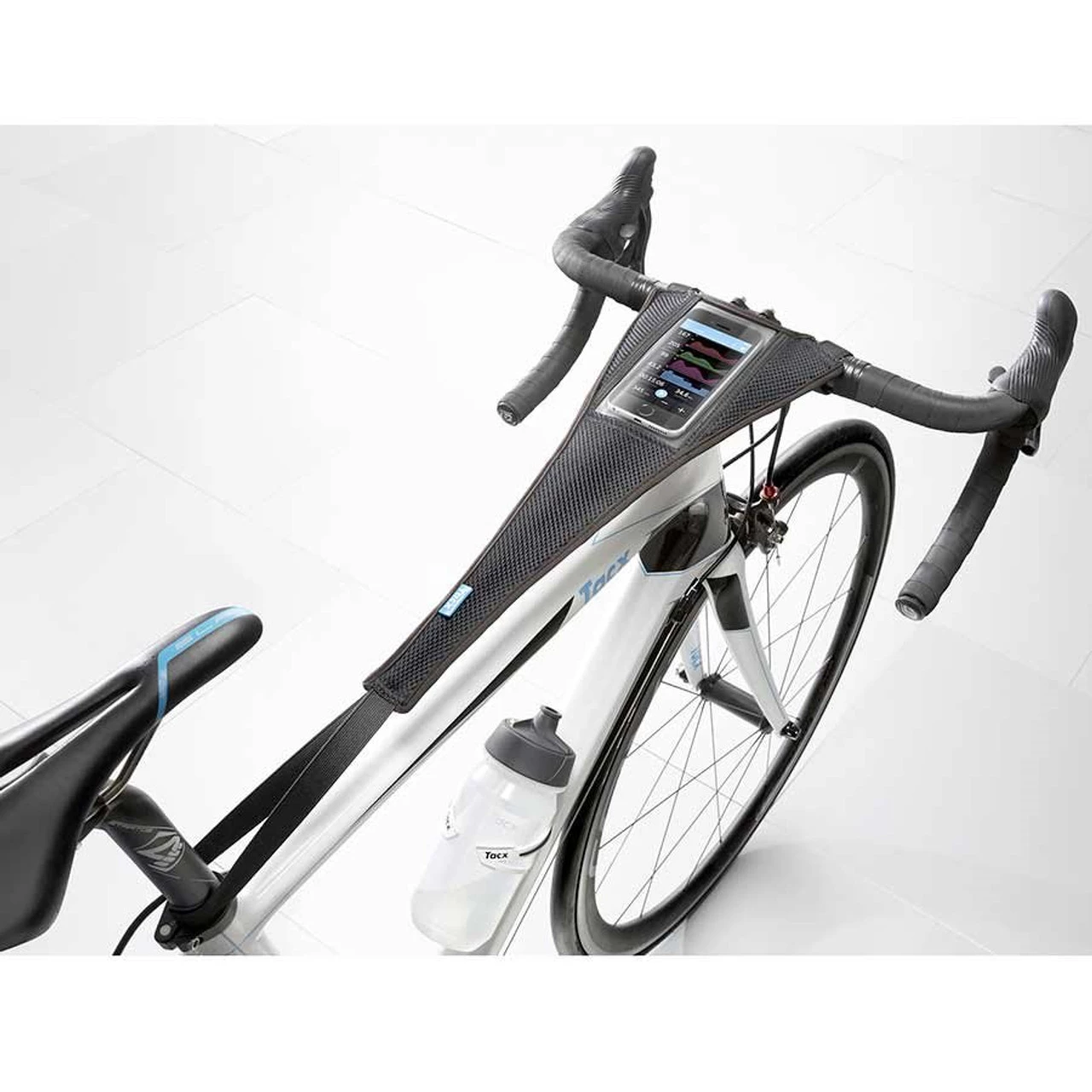 A sweat cover with a pocket for your smartphone. The sweat cover protects your bike against perspiration and enables you to use the phone.