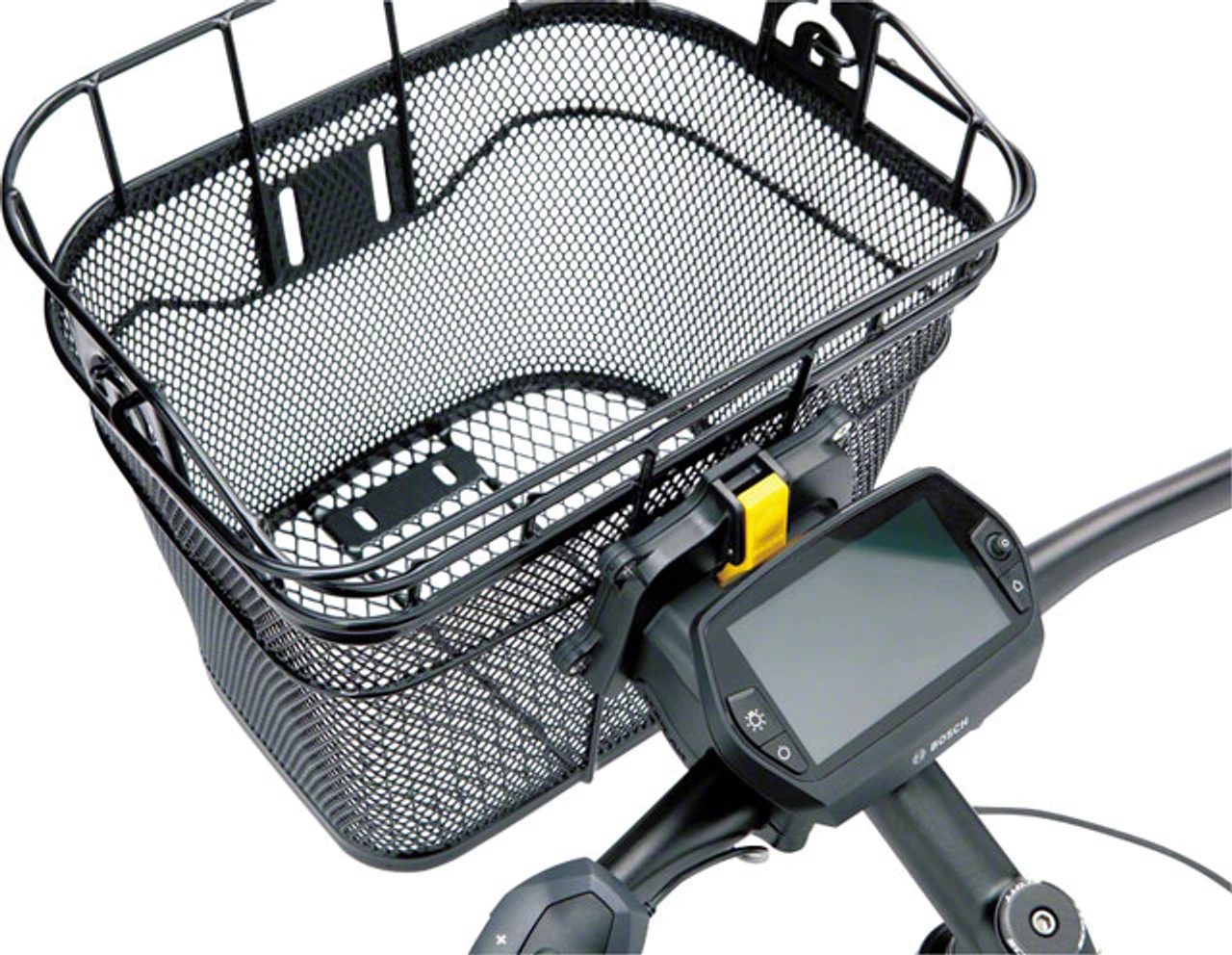 Front basket is sturdy enough to carry heavy loads while quick connect mount makes it easy to remove and reinstall after shopping.