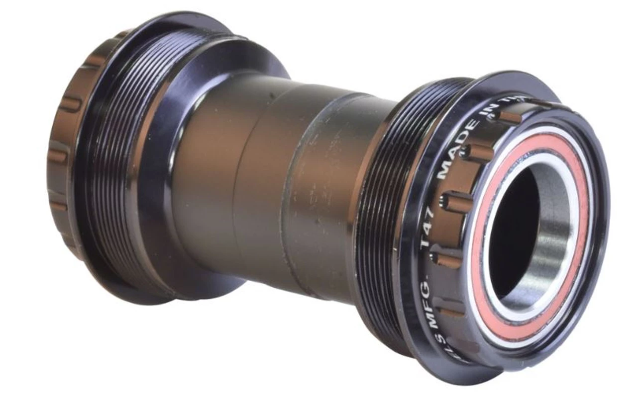 T47 Outboard threaded bottom brackets are made from machined aluminum, and thread together directly into T47 frames. Cups have internal bearings for use in BB shell widths from 68mm to 100mm.